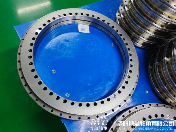 4、對軸或座孔的加工要求較高,YRT轉臺軸承安裝后外圈軸線相對偏斜要嚴加控制,以免造成接觸應力集中。